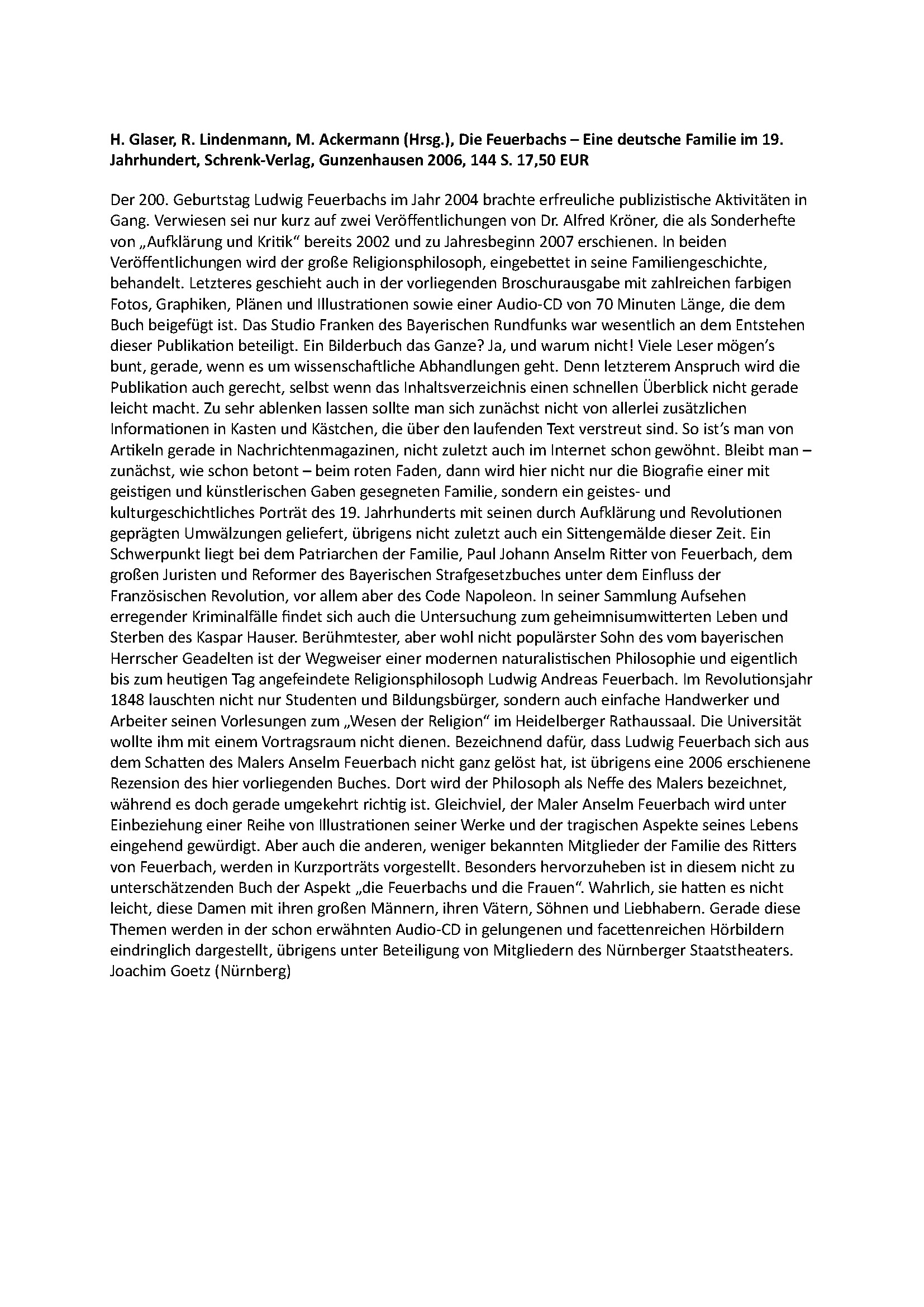 "Seit Kurzem liegt ein ziemlich ziegelsteinförmiges Buch in den Läden, "Kulturstadt Nürnberg. Herkunft und Zukunft in Europa" ist der wuchtige Titel eines wuchtigen Bandes, erschienen im Schrenk-Verlag. Es verstehe sich, schreibt Verleger und Herausgeber Johann Schrenk, als "begleitendes Lesebuch" zu der Bewerbung. So einen ambitionierten Band einer kulturellen Selbstvergewisserung würde es ohne Bewerbung gewiss nicht gegeben haben." (O. Przybillla, SZ 9.12.2019)